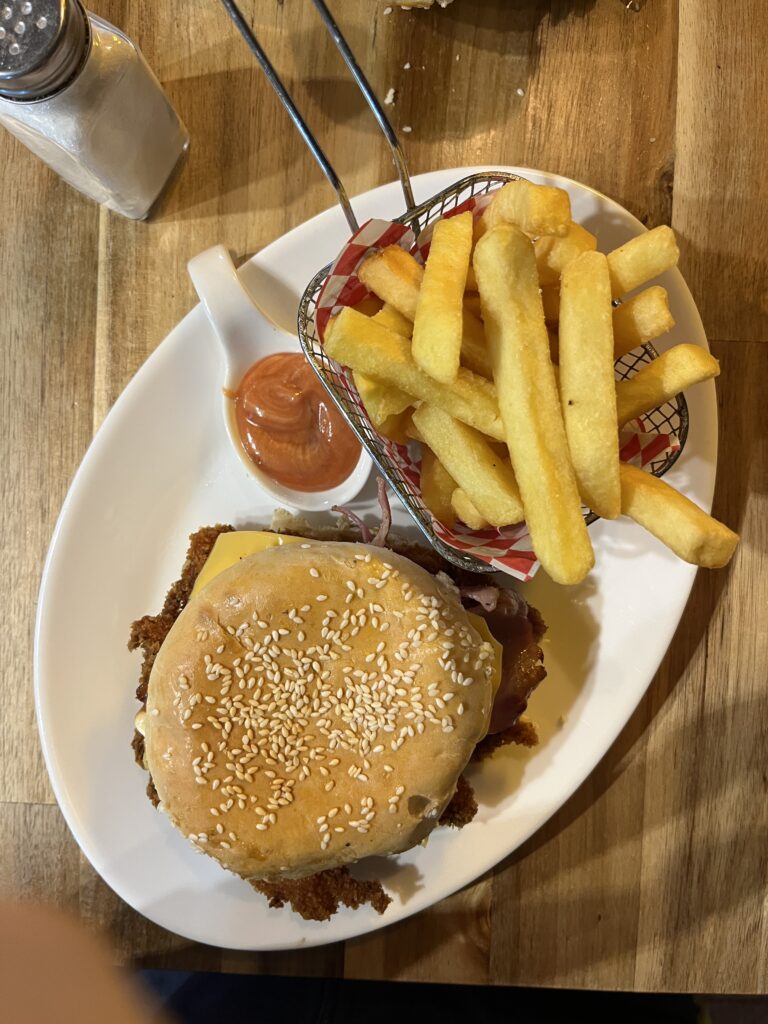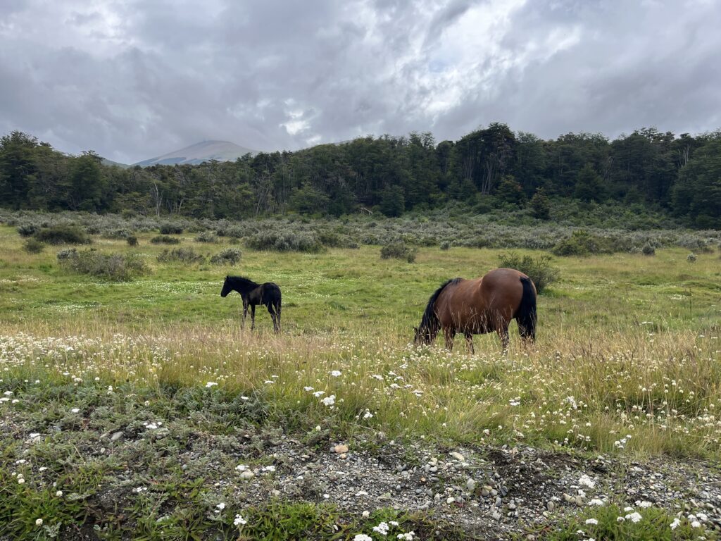 After a few days, we decide to rent a car and at least take a trip to Puerto Almanza. The route there is scenically stunning. Puerto Almanza itself is small and consists of 80% restaurants. The rest are residential buildings and small shops. We stop at the most famous restaurant in town to try a local specialty – king crab. The cooked crab is beautifully presented and served with all kinds of tools, and we are given a brief introduction on how best to eat it. The taste is a bit like lobster, but slightly sweeter. And it’s a lot of work for little reward. You can only eat the legs and claws. To get to the tasty meat, you have to crack the shell or cut it open with scissors. What’s more, it’s covered with really sharp little spines. At first, we think one crab might not be enough (although the little creature costs a whopping €100), but in the end, it’s more than enough for both of us. You can’t eat that much of it; it’s like liver sausage, you get sick of it after one bite. Still, it’s an experience. Afterwards, we go for a walk along the water. It really is the end of the world. Rugged landscape and equally rugged weather. Wind, sun, and rain alternate every minute.