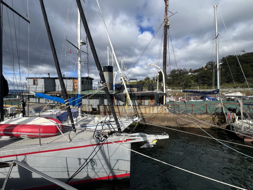 On the other hand, we quickly make friends with our boat neighbors and realize that we are now the smallest boat at this pier. Surrounded by 60-70 foot boats, Amber looks really petite. That’s why we get to keep our spot exclusively to ourselves and aren’t lumped in with the others. I don’t mind at all. Most of the other crews are commercial operators taking customers to Antarctica and South Georgia. Private boats with two crew members are rather rare. In addition, you are asked several times a day if you are taking people with you. Once we actually considered it briefly, but then decided against it. There are a number of requirements to fulfill, and ultimately the skipper is responsible if the passengers do not follow the rules. Besides, we’re not going to Antarctica at all. We would have been interested, but since you need a permit that takes about six months to issue, we don’t have enough time.