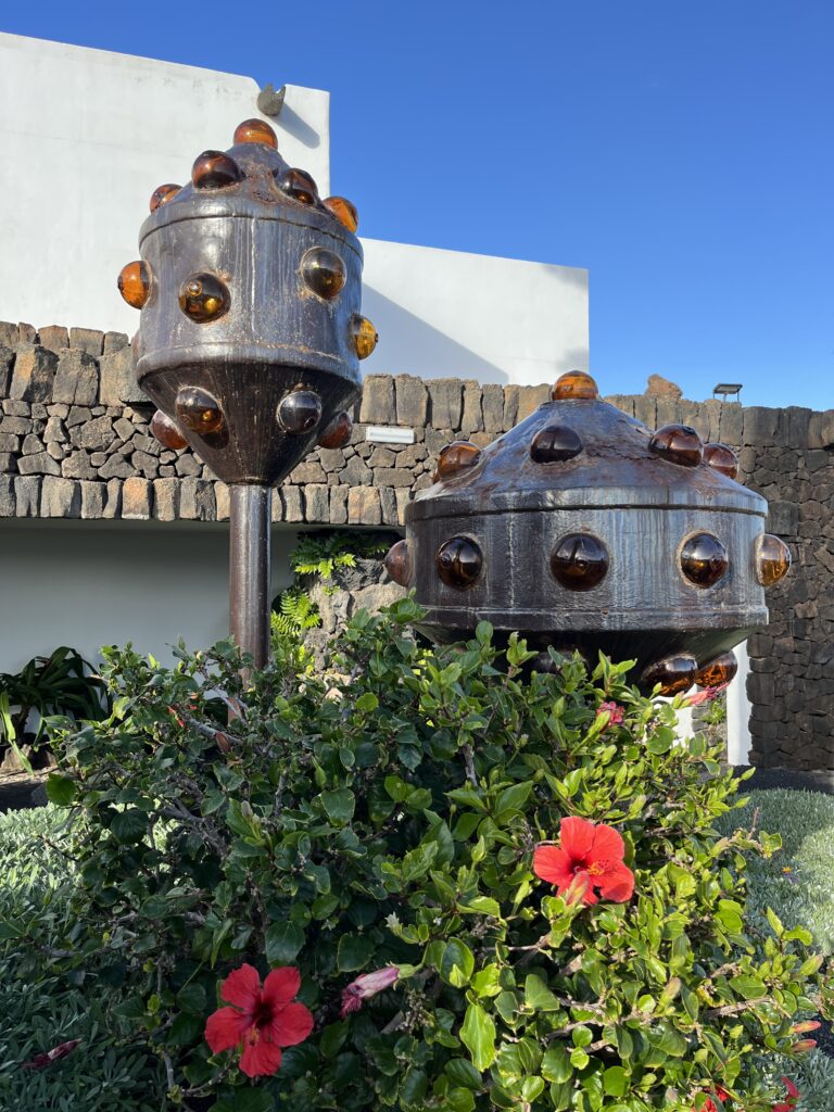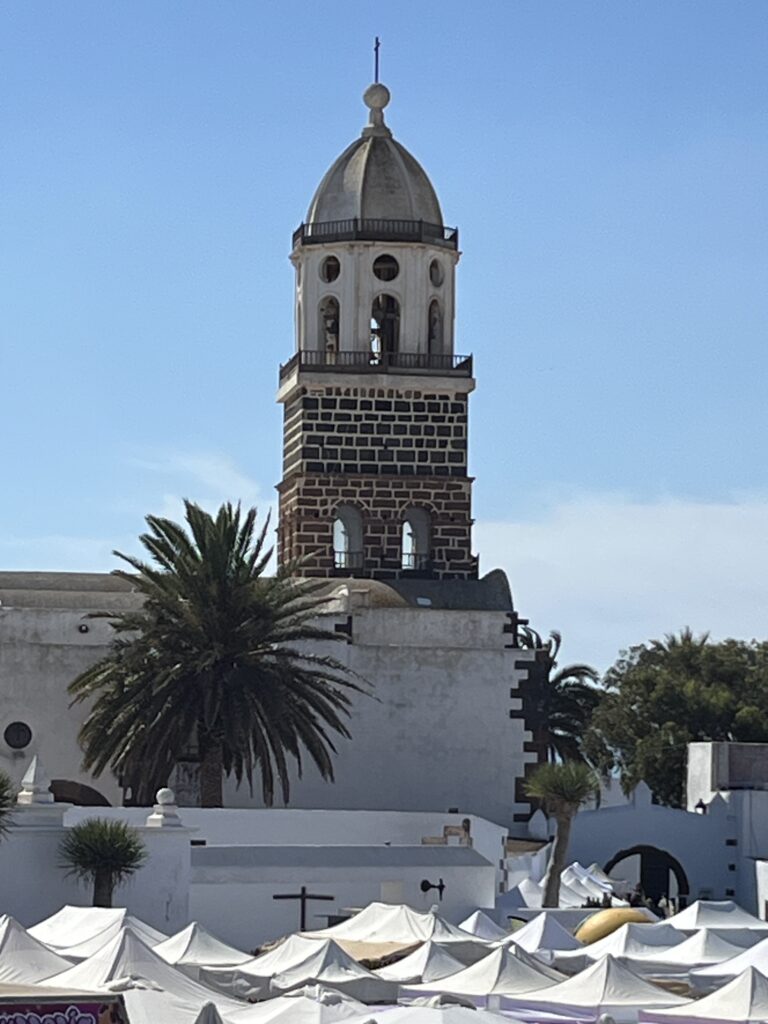 During the last two days, we took a closer look at one of Lanzarote’s famous sons, Cesar Manrique, a painter and sculptor. Born in Arrecife in 1919, he made a significant contribution to the design of the island. In 1968, Manrique persuaded his friend Pepin Ramírez, the president of the island’s administration, to ensure that no building on the island could be built higher than three floors – the height of a fully grown palm tree. This was to prevent the excesses of mass tourism on Lanzarote. The design of the houses also stipulated that they should generally be painted white, with the shutters, doors and garden fences in the fishing villages being blue and in the agricultural areas green. For a long time, there was only one high-rise building in the capital Arrecife that was built before the relevant laws came into force. During Manrique’s lifetime, the situation changed so that from the 1980s, higher buildings were erected in the large holiday centers. At the age of 23, he had his first exhibition in Arrecife. From 1945, he attended the Academy of Art in Madrid, where he graduated in 1950 with a master’s degree in painting and drawing. After the death of his partner, he had a creative crisis in 1964 and moved to New York to study American art. In 1968 he returned to Lanzarote, where he lived and worked in Tahiche until 1988 and then in a rebuilt farmhouse in Haria. In 1992, Manrique died in a car accident in Tahiche that he caused himself and was buried in Haria. We have already seen Manrique’s work at Jameos del Agua and Mirador del Rio and it is truly impressive. In Jameos del Agua there is also a very rare species of crab that only occurs in the underground salt lake. The animals are completely white because they live in relative darkness. The view from the Mirador del Rio is sensational, you can see as far as the island of Graciosa and here, too, several of Manrique’s works are on display. We also went to the market in Teguise today. There are a huge number of stalls selling handicrafts, jewelry, clothing, leather goods and regional products such as Aloe Vera. In addition, of course, there is also gastronomy. Teguise is one of the more touristy villages and the price level is correspondingly higher, with crowds of cruise tourists being brought here by bus. A different cruise ship docks at Marina Lanzarote every day, unloading plenty of guests. All in all, the island is well worth seeing and we will certainly use the time until our repair is complete for further sightseeing here.