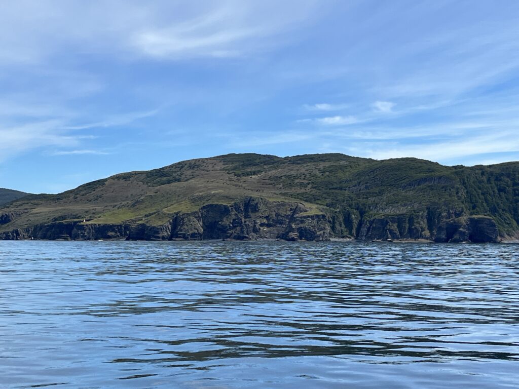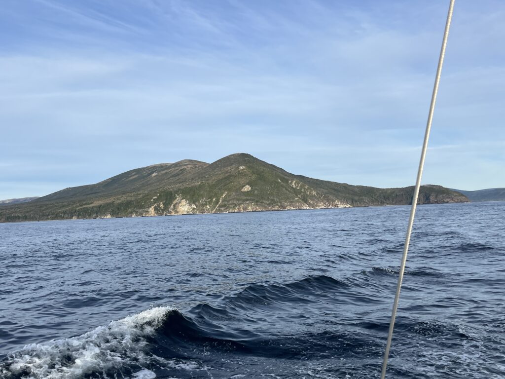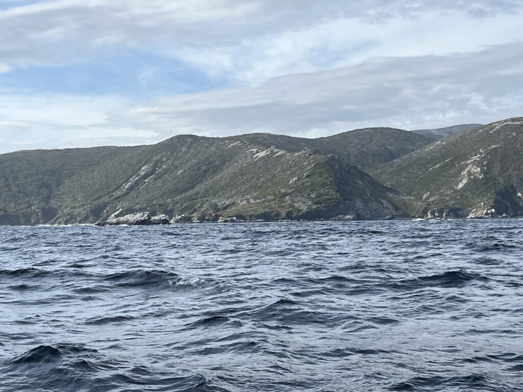You should avoid sailing into them or dropping anchor there, as the kelp can get caught in the propeller or anchor and then has to be cut out. This usually means that someone from the crew has to go into the water. The temperatures here are definitely not inviting 🥶. So when our anchor breaks free, the boat suddenly can’t be steered to the right anymore. Something is blocking it, but we are lucky. Whatever it is, it can be loosened with a few energetic strokes of the oars. The rudder is still sluggish to the right, but we can turn the boat around and leave the bay without sailing into a kelp field 😅. Once outside, we stop and get to the bottom of the problem. The steering cable on the right has come loose. This isn’t new, we’ve had it before and it can be fixed. The strain of the wind and waves over the past few days is also taking its toll on the equipment.