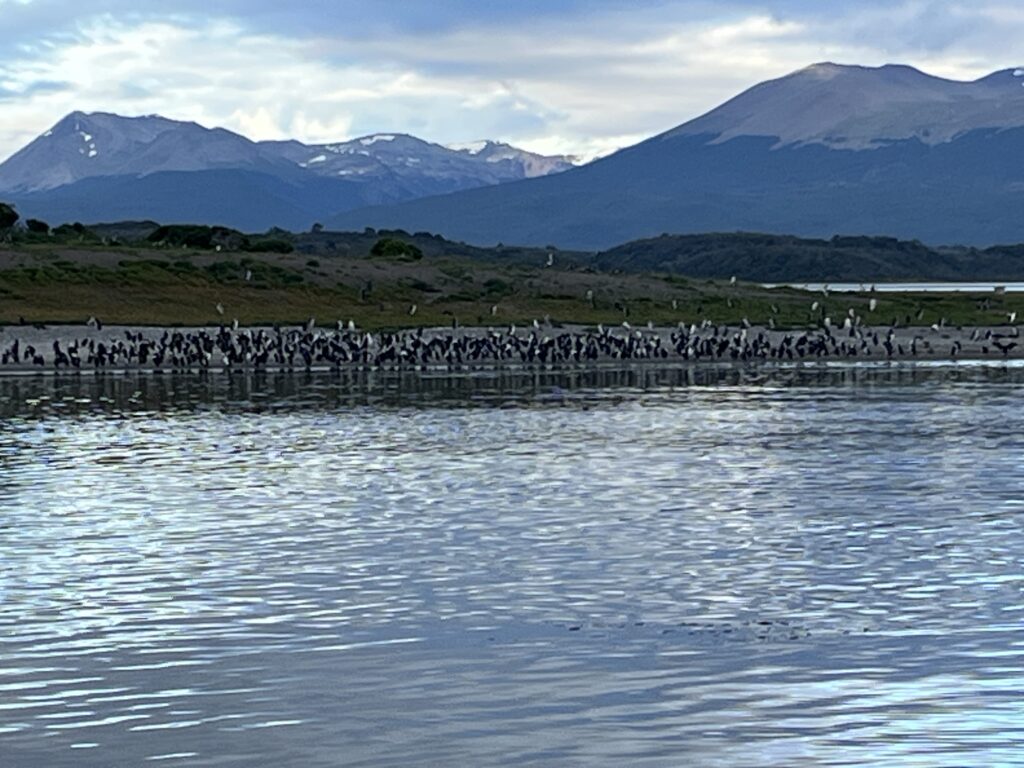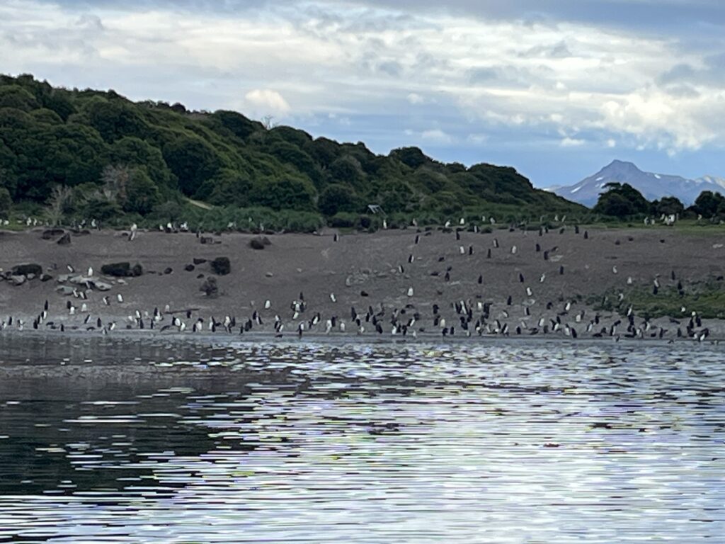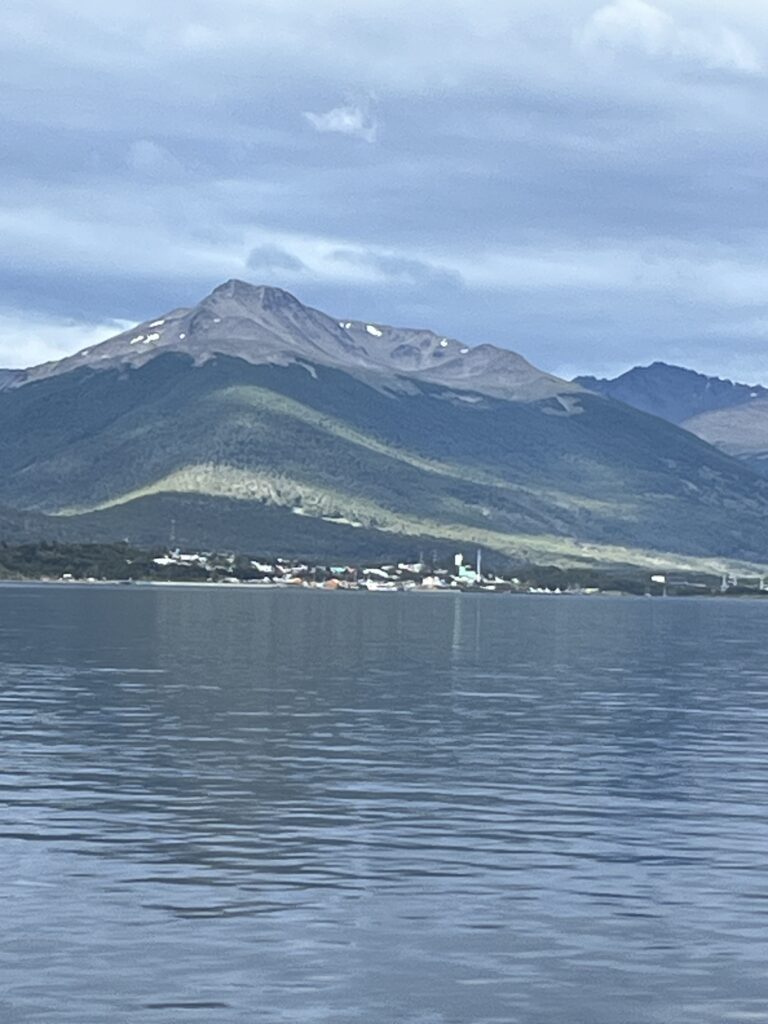 Nun beginnt für uns ein etwas herausfordernder Teil der Strecke in den Beagle Canal, die Le Maire Strasse. Hier muss man genau auf Wind und Tidenströmungen achten, da man es sonst u.U. nicht durch und unten um die Ecke in den Beagle Canal schafft. Wir haben es genau recherchiert und berechnet, so dass wir sicher sind, es gut zu schaffen bis zu unserer nächsten Bucht, der Puerto Espanol. Trödeln dürfen wir allerdings nicht, so dass wir meistens Motorsegeln um die nötige Geschwindigkeit und den Strom mit uns zu haben. Ganz geht die Rechnung wie immer nicht auf und wir werden trotzdem immer wieder gebremst, aber am Ende geht es sich aus. Es geht vorbei an der Isla Grande de la Tierra del Fuego und plötzlich sehe ich es – Walblas. Ich kann es nicht glauben. Eine Gruppe Orcas hat sich hier versammelt zur Jagd auf Robben und Pinguine. Für Segelboote interessieren sie sich gar nicht, Gott sei Dank. Wir können Buckel und Finnen sehen, aber leider zu weit entfernt um es auf Photos festzuhalten. Ich bin glücklich, wollte ich doch schon immer Wale sehen. Auch Pinguine schwimmen immer wieder mal am Boot vorbei. Es ist einfach fantastisch. So erreichen wir voll mit neuen Eindrücken um kurz nach 7 abends und 63sm Puerto Espanol und werfen unseren Anker. Nach 2 Tagen geht es weiter 56sm nach Bahia Harberton. Hier gibt es schon wieder so etwas wie Zivilisation und die Bucht ist gut geschützt. Allmählich wird uns die Zeit jetzt lang und wir freuen uns auf Ushuaia und die erste heiße Dusche seit 3 Wochen 😉. Immerhin sind wir inzwischen seit 16 Tage unterwegs ohne Landgang. Nach einer kurzen Nacht in Harberton brechen wir am nächsten Morgen früh auf zu unserer letzten Etappe im Beagle Canal. Auf dem Weg stoppen wir noch einmal kurz an der Isla Martillo, der Pinguin Insel und statten den Magellan Pinguinen einen Besuch ab. Und dann geht es endlich direkt nach Ushuaia, der südlichsten Stadt der Welt. Um 12:30, nach 37sm legen wir dort am Dock an und werden mit einem „warm Welcome“ von Raxanna in Empfang genommen. Als erstes österreichisches Boot seit Jahren und erstes TransOcean Boot dieses Jahr, sind wir glücklich und stolz, dass wir es geschafft haben, was für eine Ehre 😀. Für heute steht nur noch die Bürokratie und ein erster Spaziergang in der Stadt an. Was sofort auffällt, ist die Anzahl an Kreuzfahrt Schiffen und kommerziellen Segelschiffen, die Gäste in die Antarktis karren. Entsprechend ist der Ort sehr touristisch und teuer. Die Landschaft ist trotzdem atemberaubend und wir werden nach unserer üblichen Bootsarbeit die restliche Zeit sicherlich Nutzen um die Umgebung auszukundschaften. Später legt dann direkt hinter uns noch eines der zwei Schiffe von Skip Nowak hinter uns an. Wahnsinn, wen man hier so alles trifft 😀.