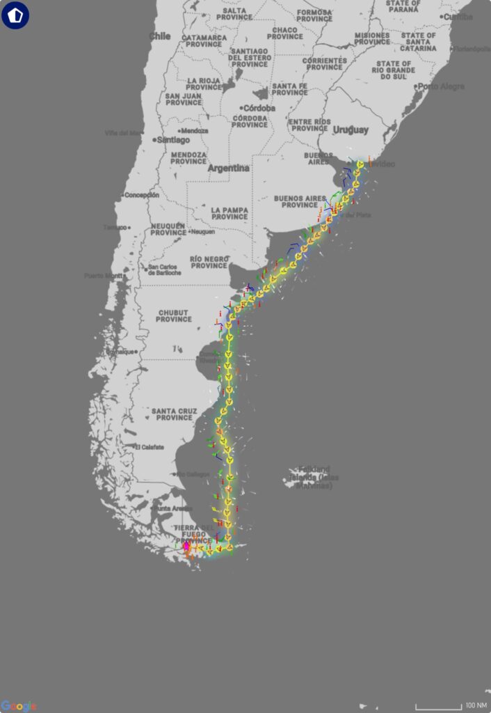 Wir verlassen also Mar del Plata und geniessen erst einmal ein paar Stunden tolles Segeln, so kann es weitergehen (wissen wir eh dass das Wunschdenken ist 😉). Dauert auch nicht lang und wir haben eine flott tropfende Stopfbuchse (eine Stopfbuchse dichtet die rotierende Propellerwelle beim Durchgang durch den Rumpf ab, um Wassereinbruch zu verhindern). Das ist definitiv eine Stelle, wo man nicht möchte dass Wasser ins Boot kommt. Also bergen wir die Segel und stoppen das Boot, damit sich die Welle nicht mehr dreht und Franz versucht mit der Strohhalm Methode das Problem zu lösen. Ganz können wir das Tropfen nicht verhindern, aber wesentlich verlangsamen. Daher entscheiden wir weiter zu fahren und nicht nach Uruguay zurück zu kehren, um das Problem an Land lösen zu lassen. Dazu muss man wissen, dass auf unserem weiteren Weg Möglichkeiten für Reparaturen an Land immer seltenere werden, von dem Erwerb von Ersatzteilen ganz zu schweigen. Und natürlich steht uns auch schon wieder Starkwind von vorne bevor, weshalb wir uns mit der Bahia Janssen unseren ersten Stopp zum Aussitzen ausgesucht haben. Auf dem Weg dorthin bekommen wir es dann noch dicke, die ganze Nacht Am Wind Kurs mit Starkwind immer über 30-40kn. Komfortabel ist echt anders. Ich kann ja wirklich immer und in jeder Position schlafen, aber da hab selbst ich keine Position mehr gefunden, in der ich nicht durch das ganze Bett gerutscht bin. Entsprechend froh sind wir, als wir nach 650sm Bahia Janssen erreichen und unseren Anker fallen lassen. Die Bucht ist zwar nicht super geschützt und dass Boot rollt schon erheblich, aber der Ankergrund ist gut und der Anker hält bombenfest. Auch hier gibt es Pinguine und ich wusste bis dahin gar nicht wie diese Tiere stinken können. Wir liegen c.a. 800m vom Ufer entfern und riechen es sehr deutlich 😖. Am nächsten Tag nach Mittag geht es schon weiter Richtung Süden. Die Landschaft verändert sich zusehends. Weniger Infrastruktur, mehr Natur. Draussen wird es immer frischer und wir sind wieder einmal dankbar für unser festes Steuerhaus, wo wir warm und trocken sitzen. Auch unsere Dieselheizung und die Motorheizung kommen immer öfter zum Einsatz.